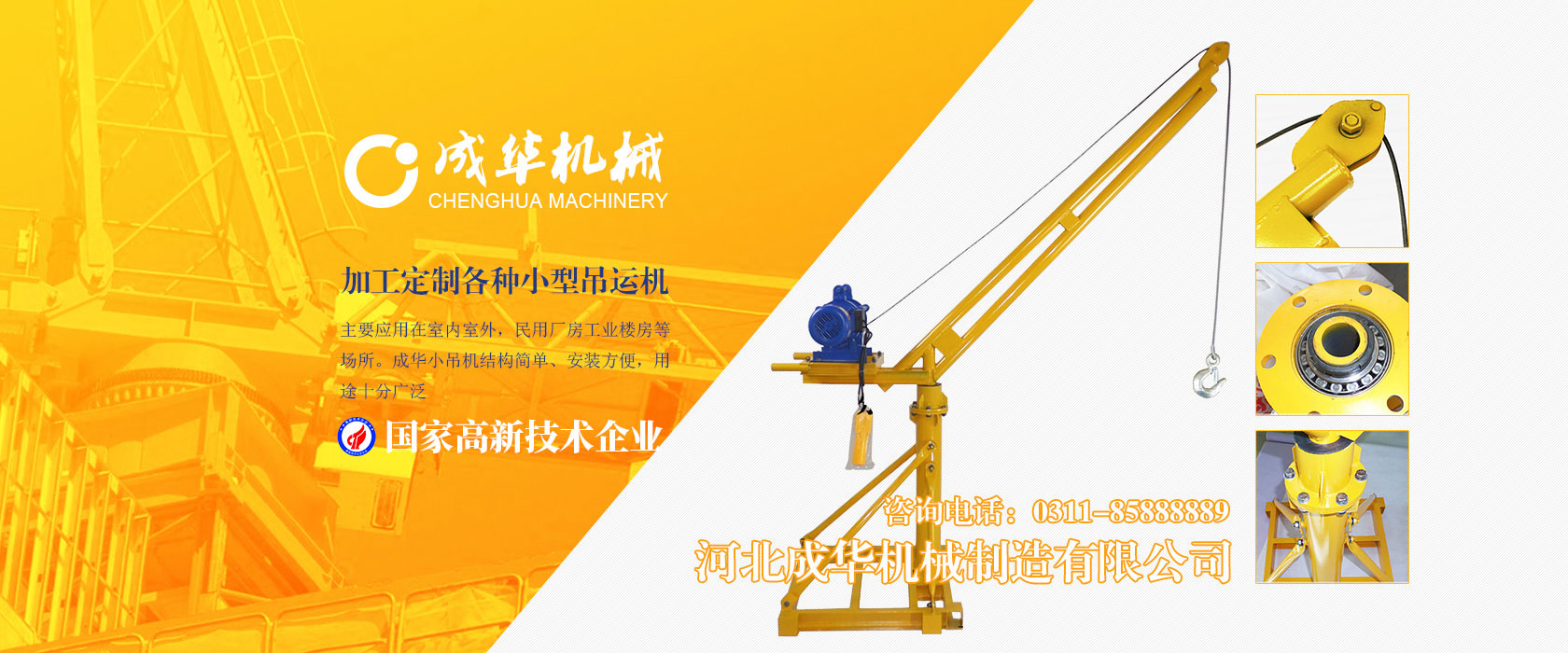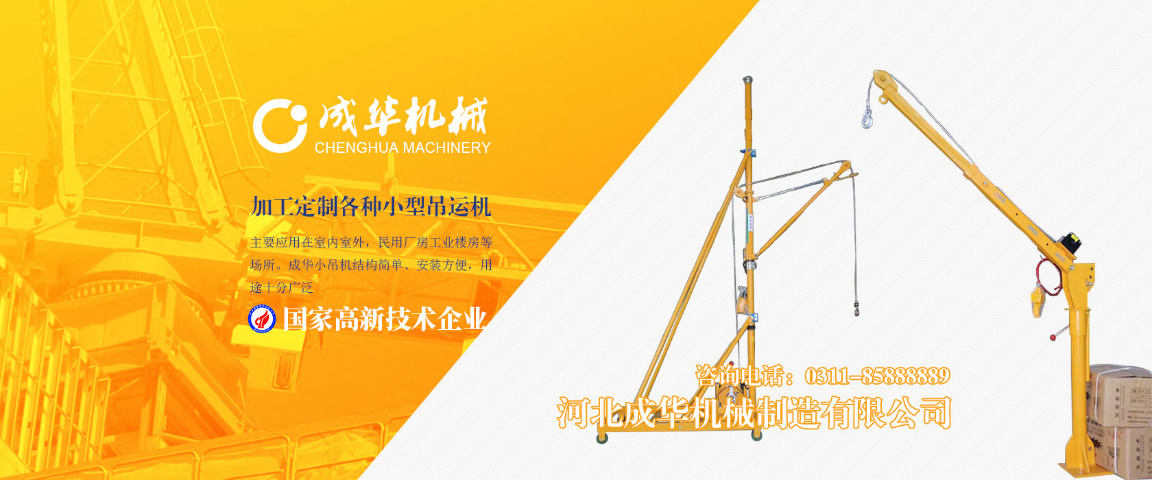 河北成華機械制造有限公司為國家高新技術(shù)企業(yè),旗下吊運機制造廠(chǎng)是家專(zhuān)業(yè)生產(chǎn)制造便攜式小吊機、手提式小吊機附屬工廠(chǎng),我廠(chǎng)產(chǎn)品主要應用在室內室外,民用廠(chǎng)房工業(yè)樓房等場(chǎng)所。成華小吊機結構簡(jiǎn)單、安裝方便,用途十分廣泛,小吊機產(chǎn)品被廣泛應用于機械制造、電子、汽車(chē)...
